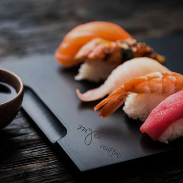Mya Sushi Steak offers a modern dining experience where premium ingredients, thoughtful craftsmanship, and atmosphere come together. Our menu highlights expertly prepared sushi, high-quality steaks, and carefully curated cocktails, designed to be enjoyed in an elegant rooftop setting.
